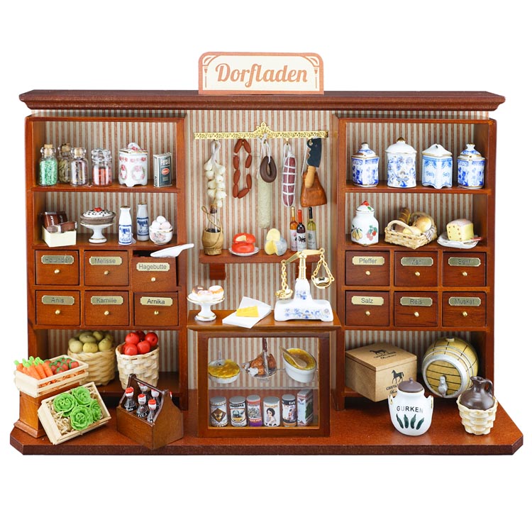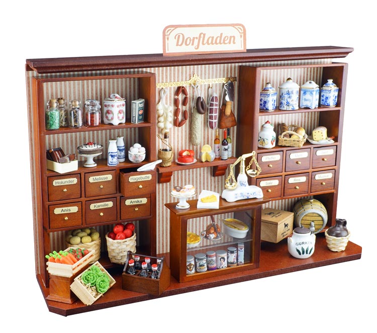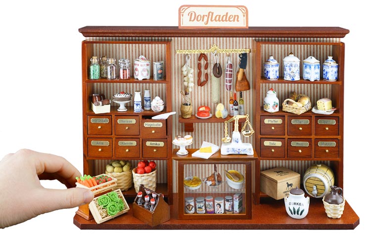 Unsere kleinen Kreationen sind perfekt auf die jeweilige Miniaturszene ausgerichtet und für Sammler und Liebhaber von Miniaturen ein tolles Geschenk oder eine ebenso bezaubernde Idee für einen Geschenkgutschein. Wenn es nicht der Dorfladen sein soll, ist vielleicht der Porzellan-Laden, ein Nähzimmer, das Musikhaus, der Uhrmacher oder ein französisches Bistro die richtige Wahl.